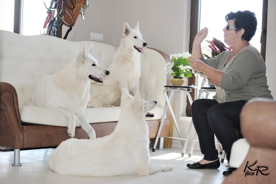 Pentru toti patru, intalnirea cu CIOBANESCUL ALB ELVETIAN a reprezentat un moment de cotitura. Frumusetea aceste rase, eleganta in miscare, caldura tacuta, vioiciunea atrag de la inceput. Usurinta cu care invata, loialitatea nelimitata, rabdarea, nevoia de a exprima si a impartasi dragoste pentru "omul" lor face ca acesti caini sa fie rasa perfecta. Pentru noi si pentru multi altii.